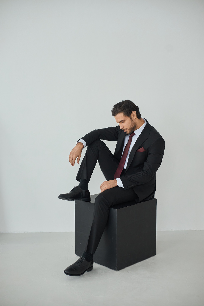 Что касается правила выбора цвета, то цвет мужских носков должен сочетаться с цветом обуви. А вот длина должна соответствовать типу обуви. Обувь на шнуровке (например, ботинки или туфли) требует длинных носков, поскольку шнуровка открывает большую площадь ноги. В то время как с лоферами или кедами можно носить короткие носки, которые будут не видны.