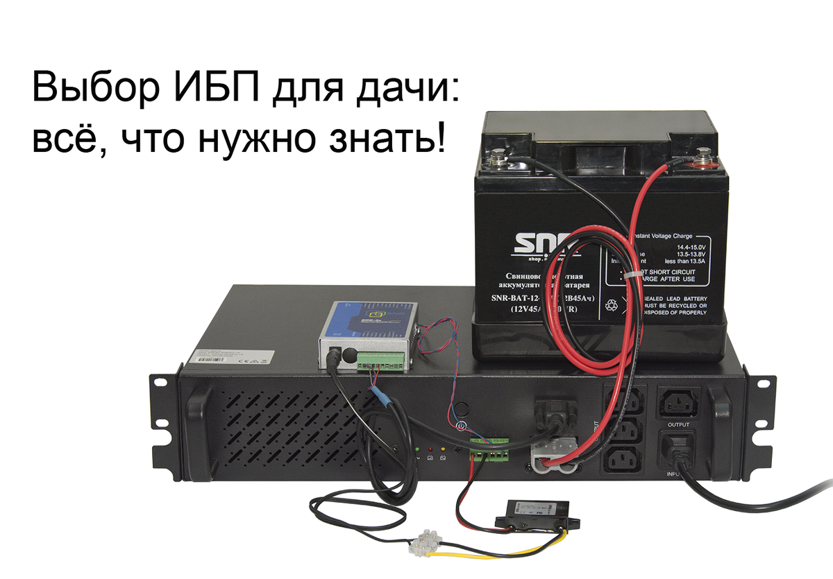 Для бесперебойного электроснабжения в загородном доме можно использовать генератор или источник бесперебойного питания (ИБП). Я расскажу, как рассчитать и выбрать ИБП, чтобы не переплатить и получить нужный результат - читайте дальше! В отличие от генератора на бензине или солярке, ИБП не требует заправки, практически не шумит и ломается на порядок реже. Из чего он состоит? Главные элементы ИБП: Как правило, всё, кроме АКБ, объединяется в общем блоке, который называется просто "инвертор". Бывают ИБП в виде моноблока, в которые встроен аккумулятор, но они маломощные, имеют очень малый запас времени работы (порядка 10 минут) и применяются только для компьютеров и светодиодной подсветки - их мы рассматривать не будем. При выборе ИБП нужно учесть три главных параметра: Мощность инвертора должна соответствовать мощности вашей нагрузки, причём если в цепи есть приборы, создающие скачок тока при запуске, например станки с электродвигателями, нужно оставлять запас не меньше 50%, иначе инверто