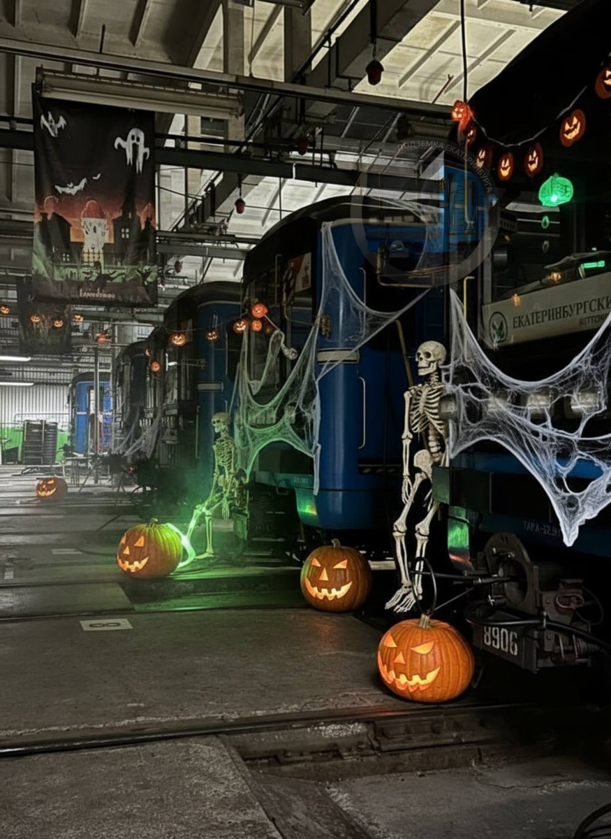 Подземка Екатеринбурга «нарядилась» к Хэллоуину. Правда, только на картинках. В метрополитене немного побаловались с нейросетями и опубликовали фантазийные варианты праздничного оформления.