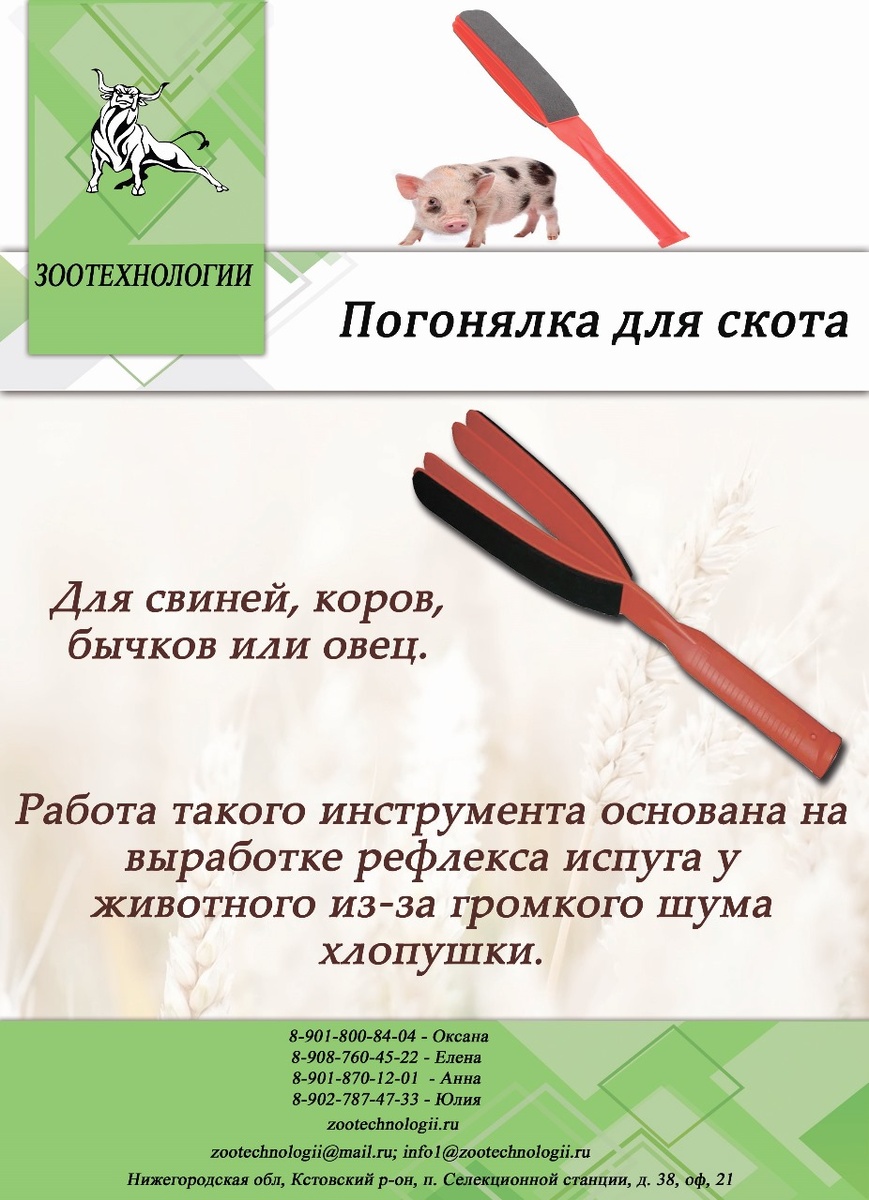 Добрый день. В продаже погонялка-трещетка с 4-мя лепестками, которая предназначена для перегона животных, в том числе поросят и КРС. Принцип работы: при ударе лопасти (лепестки) создают шумовой эффект, что стимулирует животных к более быстрому передвижению. Погонялка безвредна для животных, не причиняет им боли. Такие инструменты могут использоваться в фермерских и животноводческих хозяйствах, на убойных пунктах мясоперерабатывающих предприятий, этапах погрузки и разгрузки скота на машины. Оставить заявку можно у наших менеджеров: Оксана: 8-901-800-84-04 Елена : 8-908-760-45-22 Анна: 8-901-870-12-01 Юлия: 8-902-787-47-33 Будьте с нами в Одноклассниках✔️ #Погонялка_трещетка #Свиньи #КРС