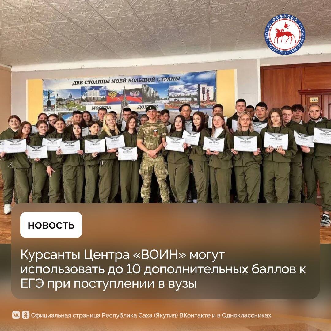 Выпускники школ, прошедшие обучение в Центре «ВОИН», при поступлении в высшие учебные заведения регионов России могут воспользоваться дополнительными баллами к ЕГЭ. 🔹 Сейчас от 2 до 10 дополнительных баллов к ЕГЭ выпускникам Центра «ВОИН» предоставляют 27 высших учебных заведений в 11 субъектах РФ, в том числе на Дальнем Востоке (Бурятия, ДНР, Чувашия, Татарстан, Калмыкия, Якутия, Камчатский край, Кемеровская, Сахалинская, Свердловская, Мурманская области). «Центр "ВОИН" дает курсантам знания и навыки, необходимые в непростых современных условиях — от тактической медицины до огневой подготовки и управления дронами. И не менее важно, что мы заботимся о судьбе ребят после окончания обучения: они получают хорошие перспективы для дальнейшего развития и построения карьеры», — рассказал Председатель правления Центра «ВОИН», депутат Госдумы, Герой ЛНР Виктор Водолацкий. 🔹 При поступлении в вузы своих регионов в ходе приемной кампании-2025 курсанты из 4 филиалов «ВОИНа» воспользовались до