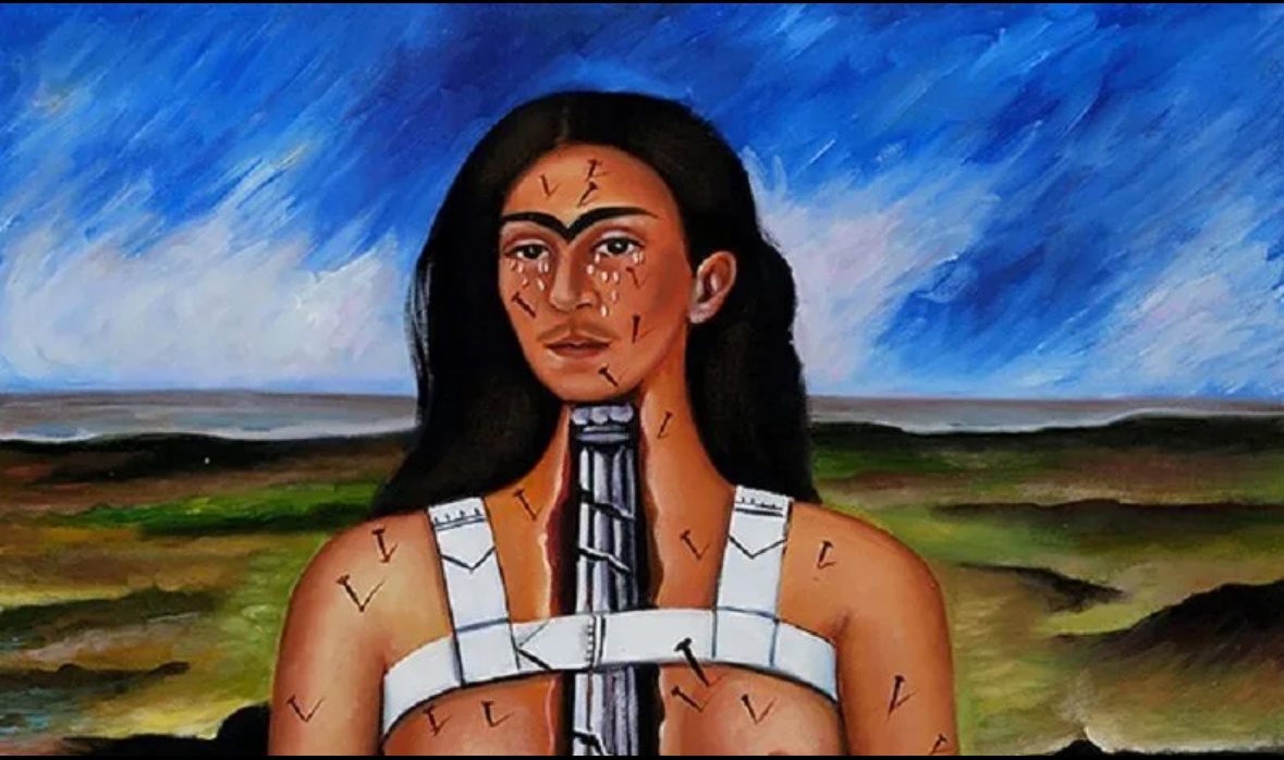 Живопись как исповедь Фрида Кало всю свою жизнь превращала собственное тело в искусство. Болезни, травмы, операции становились не только её личной болью, но и материалом для работы. Картина «Сломанная колонна» (1944) — одно из самых откровенных её признаний, где символика боли оборачивается метафорой человеческой хрупкости и стойкости. Образ тела На картине Фрида изображает себя обнажённой до пояса. Вместо позвоночника — расколотая колонна, будто античный фрагмент, который должен держать тело, но сам рассыпается. Грудь и живот пронизаны глубокими трещинами, в коже — десятки маленьких гвоздей. Её лицо спокойно, но по щекам текут слёзы. Это сочетание внешней неподвижности и внутреннего крика создаёт трагическую силу образа. Символика колонны Античная колонна в живописи всегда символизировала устойчивость, опору, вечность. У Кало она сломана, растрескана. Но именно в этом её мощь: тело разрушается, но фигура остаётся стоящей. Художница показывает себя не жертвой, а символом сопротивлен