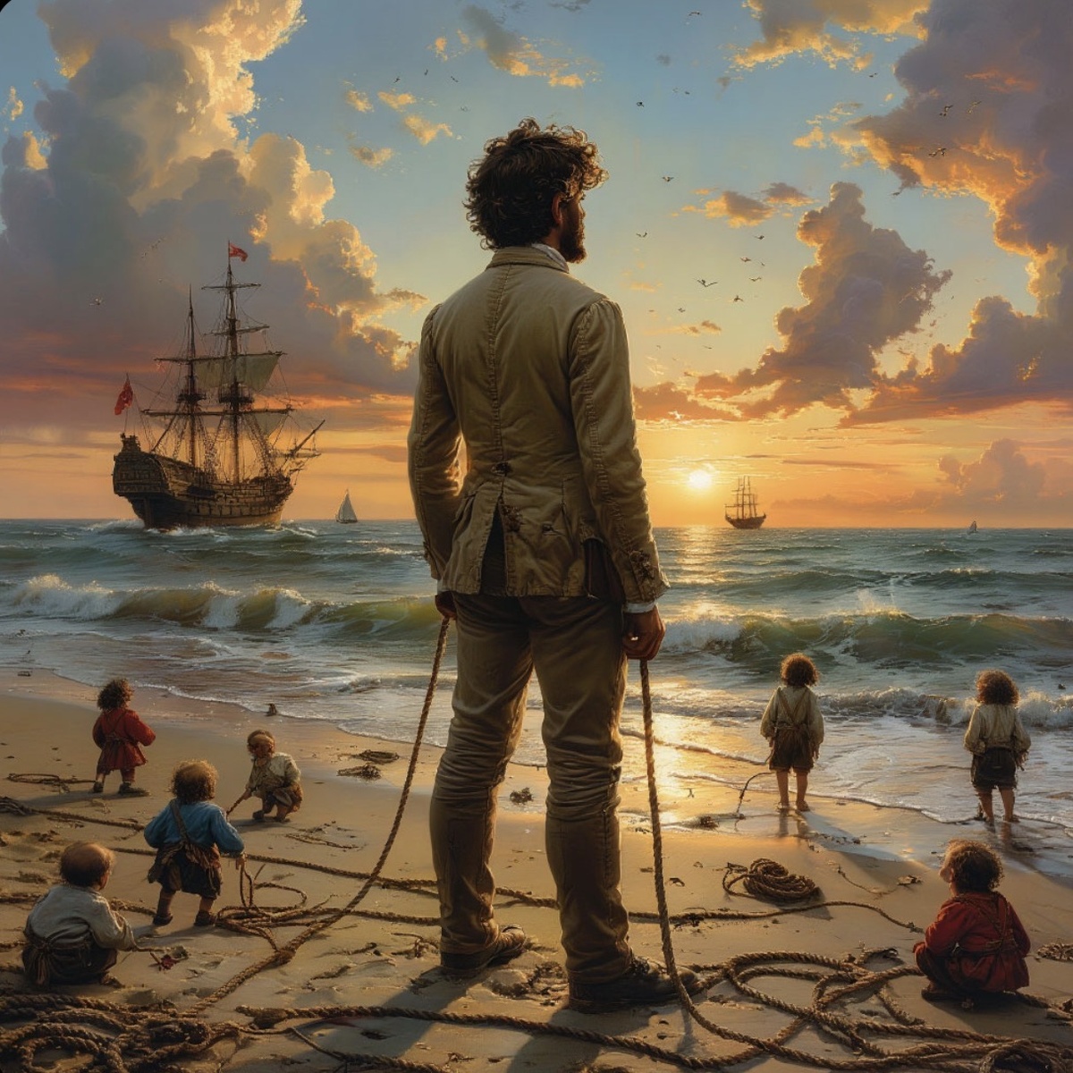 ΠΡΠ½ΡΠ²ΡΠΈΡΡ Π½Π° Π±Π΅ΡΠ΅Π³Ρ, Π³Π΅ΡΠΎΠΉ ΠΏΠΎΠ½ΠΈΠΌΠ°Π΅Ρ, ΡΡΠΎ Π΅Π³ΠΎ ΡΠ΅Π»ΠΎ ΠΏΡΠΈΠ²ΡΠ·Π°Π½ΠΎ ΠΌΠ½ΠΎΠΆΠ΅ΡΡΠ²ΠΎΠΌ ΠΊΡΠΎΡΠ΅ΡΠ½ΡΡ Π²Π΅ΡΡΠ²ΠΎΠΊ β Π²ΠΎΠΊΡΡΠ³ Π±Π΅Π³Π°ΡΡ Π»ΡΠ΄ΠΈ ΡΠΎΡΡΠΎΠΌ Π½Π΅ Π²ΡΡΠ΅ ΡΠ΅ΡΡΠΈ Π΄ΡΠΉΠΌΠΎΠ².