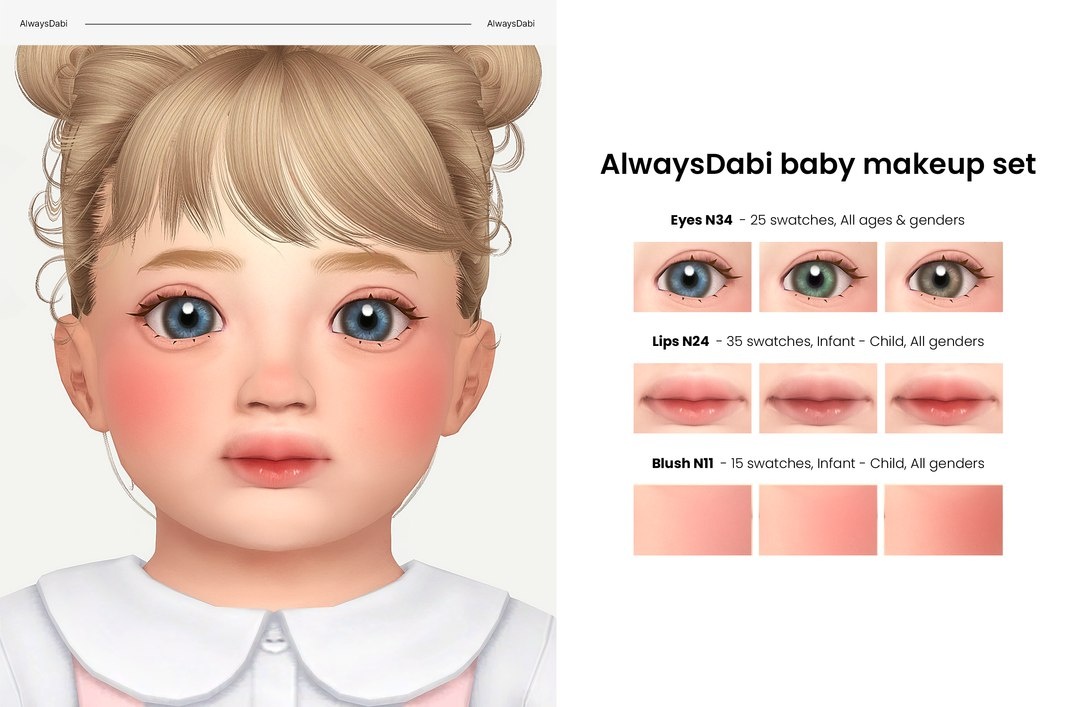 Скачать мод бесплатно Румяна, помада, линзы - Baby makeup set для Sims 4 - #Макияж@simsfans_ru