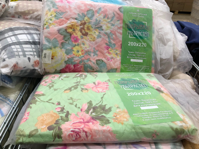 Всем доброго дня! Сегодня снова заглянула в магазин «Светофор» — просто из любопытства, без особых планов. И, как часто бывает, уйти с пустыми руками не получилось. Как бы ни относились к этому магазину, но здесь по-прежнему можно найти много интересных и действительно полезных вещей. Да, продукты я беру здесь выборочно — в основном овощи, фрукты и рыбу, — зато в отделах с товарами для дома и хозяйства порой попадаются настоящие находки. Расскажу обо всём по порядку. Начну с того, что привлекло внимание в текстильном отделе. Появились покрывала ультрастеп размером 200×220 см. Они двухсторонние, стёганые, с приятной на ощупь поверхностью и множеством ярких узоров. Однотонных расцветок нет, зато выбор широкий — от нежных пастельных до насыщенных тёплых оттенков. Состав полиэстер, изготовитель — г. Чебоксары. Покрывало лёгкое, хорошо стирается и быстро сохнет — отличная находка для спальни или гостиной. Рядом стоят комнатные тапочки с меховой отделкой. Размеры — с 36-го по 40-й, производ