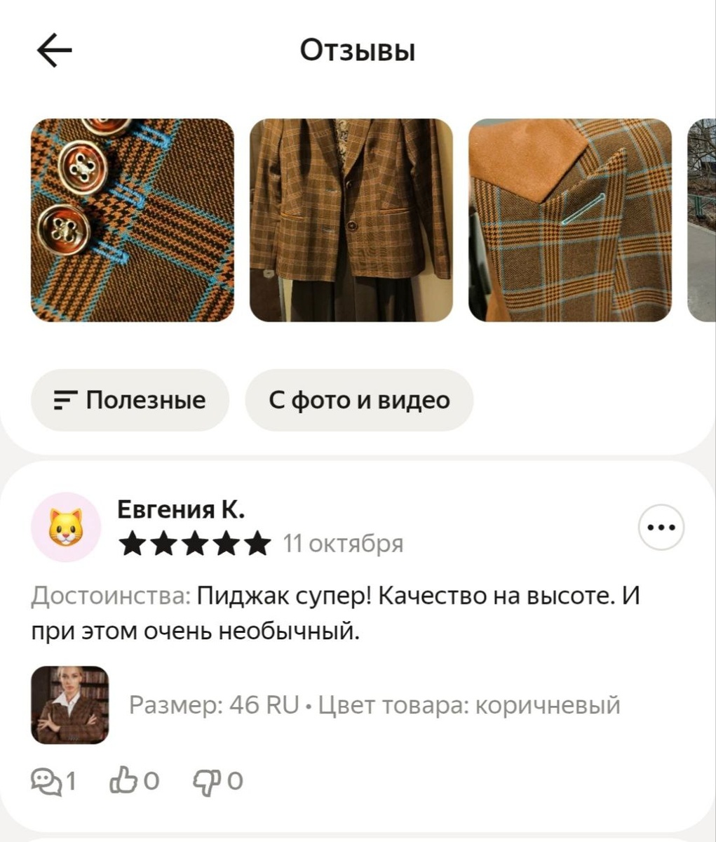 «Пиджак супер! Качество на высоте. И при этом очень необычный» — Евгения К.