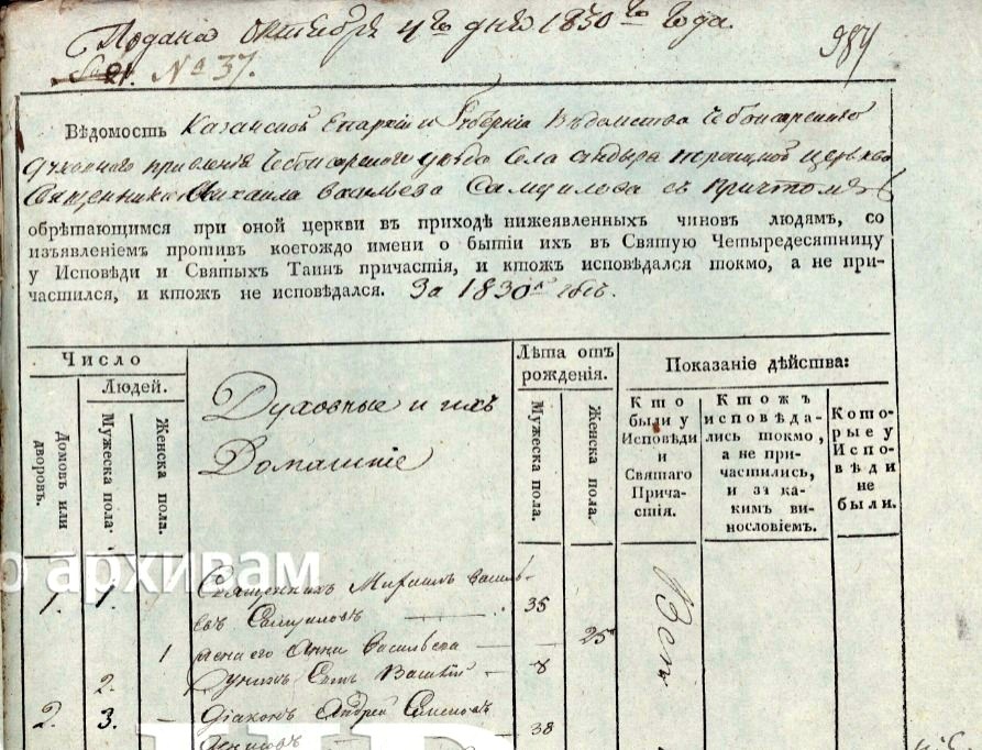 1830 год. Село Сундырь. Чебоксарский уезд. Коротков Ефим Феодорович.