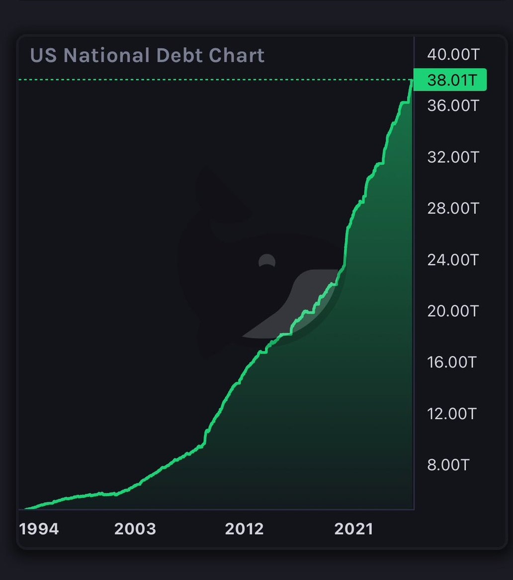 🔸Государственный долг США достиг нового рекордного уровня в $38 трлн.