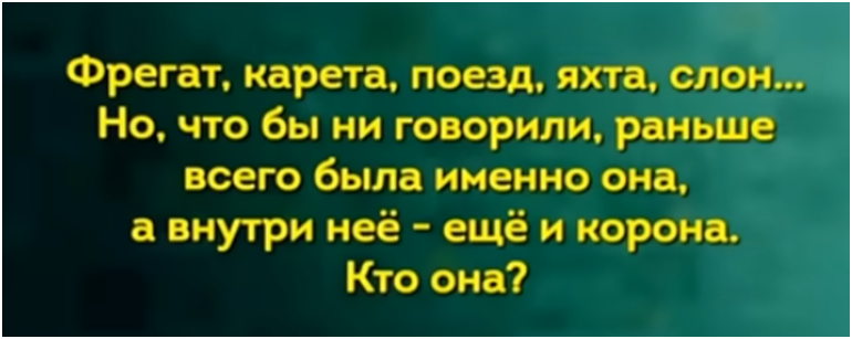 «Воскресение» Льва Николаевича Толстого не хочет отпускать. Сильные игроки в финале выбирают тему ЧТО ВНУТРИ. И финальный вопрос: КУРИЦА (ЯЙЦА ФАБЕРЖЕ) Никто не догадывается. И очень необычная ситуация. Одинаковый результат у двух игроков. Победителя выбирает ПЕРЕСТРЕЛКА. 5 вопросов на тему ВОДА. Стоимость возрастает от 100 до 500. И всё решает вот этот финальный вопрос за 500. СЕЛЬТЕРСКАЯ Та вода, которую пьёт Нехлюдов в трактире во время несносной жары, когда сопровождает этап от острога до вокзала в Москве. Название, возможно, связано с латинским SALTARE (прыгать). С сальто мортале. В игре был и КАРТУЗ. Фуражка с козырьком. Самый популярный головной убор крестьян и небогатых горожан в дореволюционной России. В тексте «Воскресения» картуз мне как-то не запомнился. Вот в «Жизни Арсеньева» у Бунина картузов точно было много. КОРЕННИК ВНУЧКОЙ По Древнему Риму мне понравился вот этот вопрос. СИВИЛЛЫ На месте Александрийского маяка с 1477 крепость КАЙТ-БЕЙ ПРУССИЯ – это Тевтонский орден!