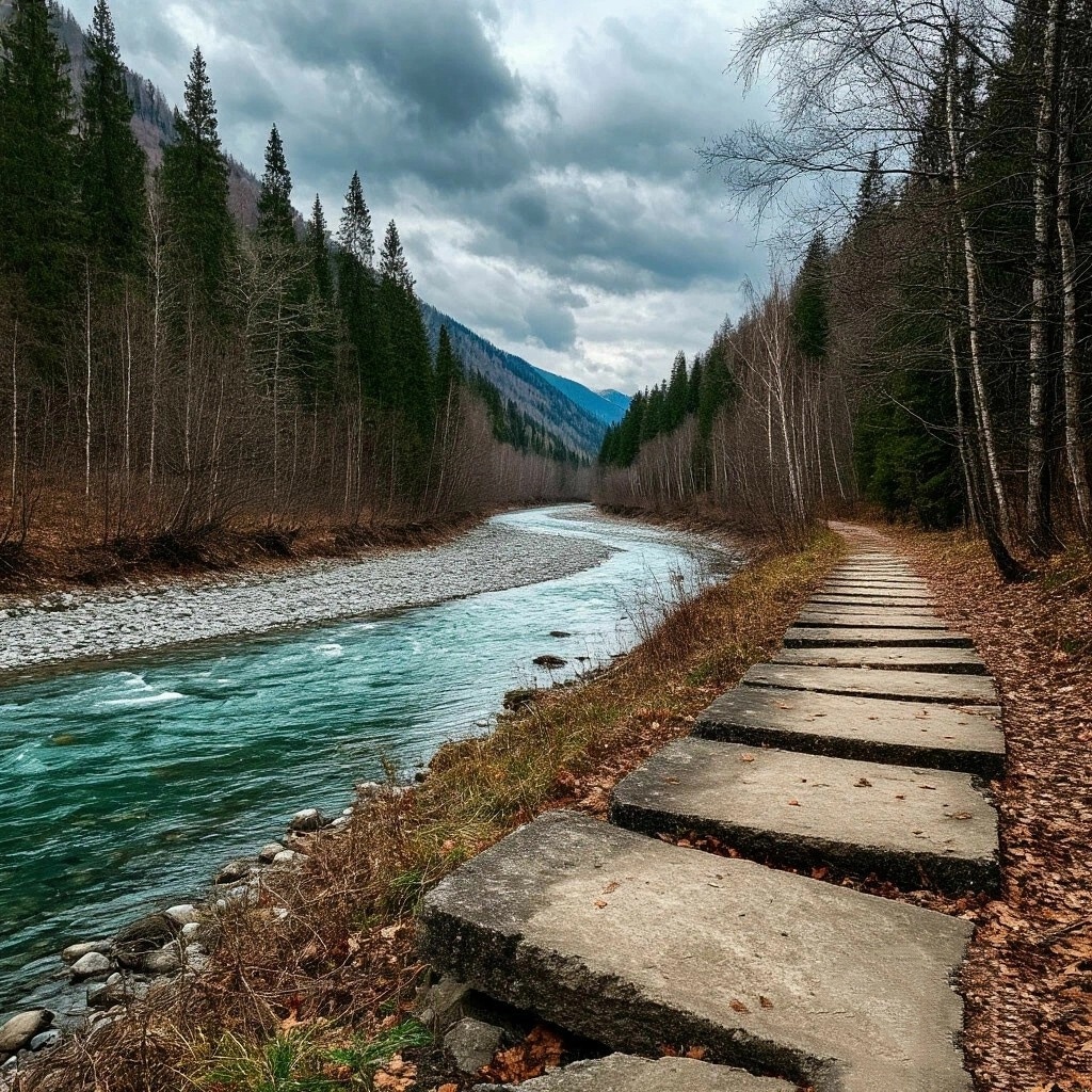 Красивое место посреди поросших лесом гор. В низине- чистая и быстрая река. Словно кто-то специально расчистил здесь всё. Максим присматривался к пустоши, стараясь рассмотреть то, что искал... Нашлась.