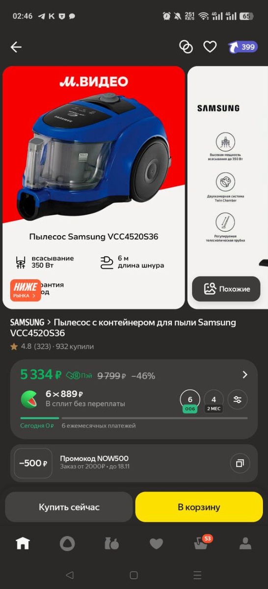 Пылесос с контейнером для пыли Samsung за 5334₽ https://market.yandex.ru/cc/7qrxtb