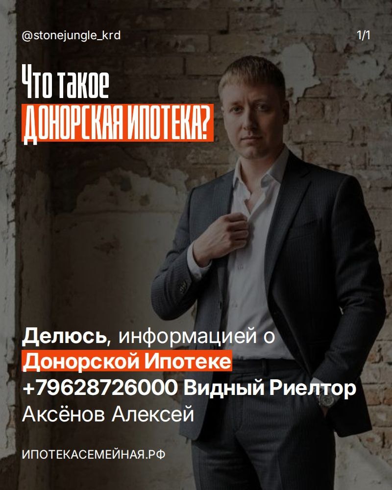 🏦 ДОНОРСКАЯ ИПОТЕКА: Что это? Рассказываю про интересный способ получить ипотеку, даже если ваш доход не позволяет взять нужную сумму 💡 Что это такое: 📌 Привлечение близкого родственника или знакомого как созаемщика 📌 Донор разделяет с вами ответственность по кредиту 📌 Его доход учитывается при одобрении ипотеки ❓ КОМУ это ПОДХОДИТ: 👨👩👧👦 Семьям, которые подходят под льготную ипотеку, но не проходят по доходам 👥 Тем, кто хочет увеличить сумму одобрения 🤝 Желающим разделить финансовую нагрузку с родственниками ℹ️ Важные моменты: ❗️ Донору обязательно выделяется доля в квартире ❗️ Некоторые банки работают только с донорами-родственниками ❗️ Кредитная история формируется у обоих заемщиков ⚠️ Донор теряет право на свою льготную ипотеку в будущем 💡 Перед оформлением важно всё тщательно обдумать и взвесить риски. Готов помочь разобраться в деталях и подобрать оптимальный вариант! Остались вопросы? Напишите мне, чтобы получить свой план расширения жилья. 📞 +79628726000 ❤