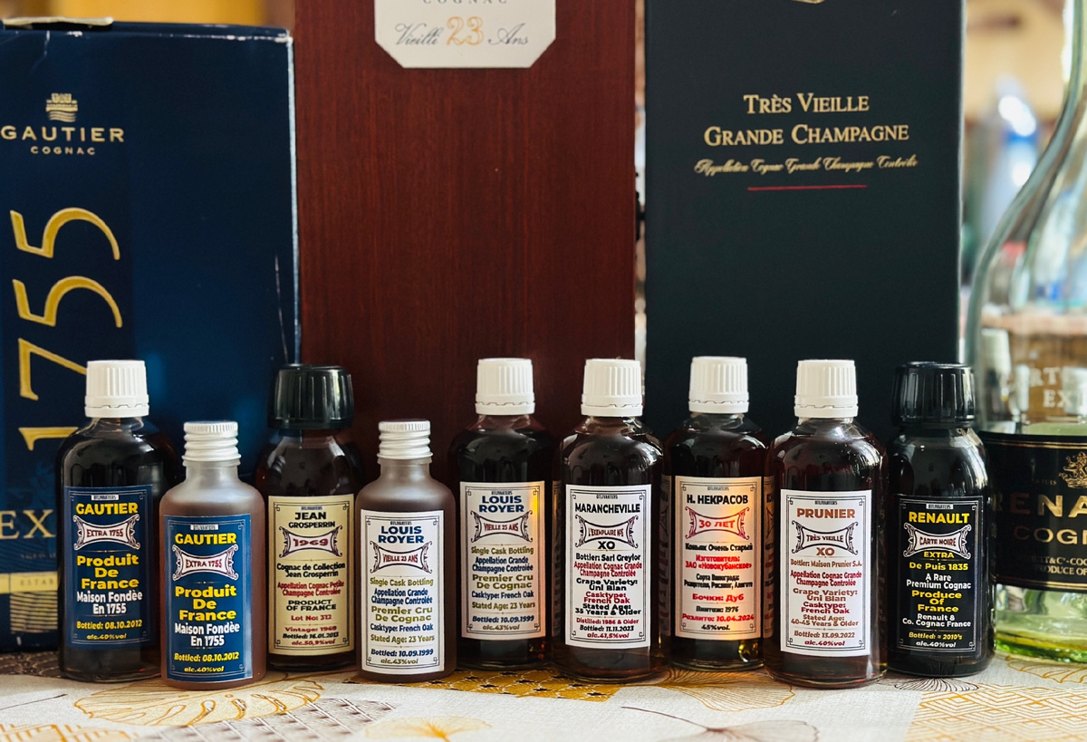 Привет знатоки! Ну что устроим мегабаттл ? Проверим кто всë - таки экстра а кто Хо здесь! Дождался заказ сэмплов и... Там одни коньяки 😁 Часть уже конечно прихлебнул 😄 Однако и для баттла есть что протестировать! Участники: Готье экстра Удивительный коньяк Gautier extra 1755 создан по случаю 250 - летия дома Готье и в дань уважения своему основателю - Луи Готье. Конкретно возраст спиртов не указан, но на сайте производителя написано что в купаже присутствуют коньячные спирты с выдержкой до 45 лет. В целом в инете встречается информация о возрасте от 7 до 25 лет. Купаж из винограда регионов гранд шампань, пти шампань и фэн буа. Крепость 40% Объëм 150 мл Дата розлива: 8.10.2012 Аромат: Мягкий, не интенсивный, приходится делать глубокий вдох чтобы понять его ароматику. Ваниль и специи, цветы и абрикосы, мëд 🍯 и бальзам, развивается в пряности для глинтвейна, кардамон, корица, апельсин, гвоздика, появляется травянистость и сразу же сладкая изюмность, по итогу становится ц