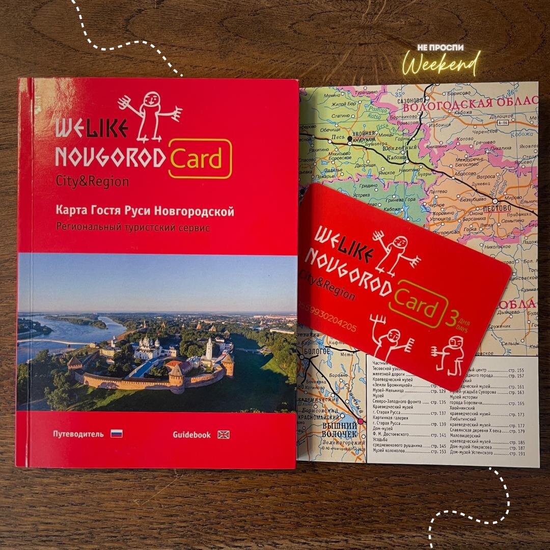 Карта гостя. Собираясь в путешествие по Великому Новгороду, советуем приобрести «Карту гостя Руси Новгородской» - она помогает прилично сэкономить на музеях: более 50 музеев по Новгороду и всей области можно будет посетить бесплатно, а также дает скидки на экскурсии и приятные бонусы в ресторанах и отелях. Есть два формата карты: 1. Индивидуальная - для одного человека, действует 24/ 48 / 72 часа с момента первого использования. Стоимость от 500 руб. 2. Семейная - для двух взрослых и двух детей, также на 24 / 48 / 72 часа. Стоимость от 1000 руб. ❗️ Важно: комплект «Карты гостя» включает саму карту и путеводитель с купонами. При посещении музеев купоны из путеводителя предъявляются для проверки и отчетности. Чтобы воспользоваться всеми преимуществами программы, необходимо всегда иметь при себе и карту, и путеводитель. Карту можно приобрести: • онлайн на официальном сайте novgorod.travel; • в туристических информационных центрах Новгорода и областных городов (мы покупали в г. Борович