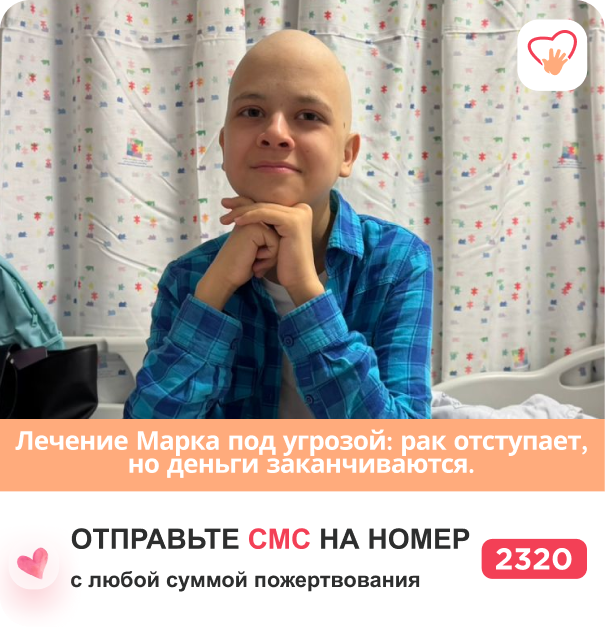 Марк держится из последних сил. Он прошёл пять блоков тяжёлой химии, похудел до 32 кг. Недавно врачи сделали МРТ, впервые за долгое время сказали главное слово: улучшение. Опухоль уменьшилась. Это значит, что лечение работает! Но сейчас всё может остановиться. Клиника требует оплаты, иначе терапию прервут. Здравствуйте, дорогие люди, которые меняют мир к лучшему! Когда Марк обращается к людям за помощью, голос у него дрожит. Он не привык просить, он привык терпеть. Привык бороться. В свои 14 он слишком хорошо понимает, что с ним происходит, какие лекарства ему капают и почему мама ночами не спит у кровати. В каждом его слове не жалоба, а просьба. Он говорит тихо, но в его голосе больше силы, чем во многих взрослых. Его обращение невозможно слушать спокойно. Он не просит невозможного – только продолжить лечение, которое уже даёт надежду. Он верит, что всё получится. Ему просто нужно, чтобы мы поверили вместе с ним. Друзья, самые добрые люди, давайте объединимся, чтобы спасти жизнь Марку
