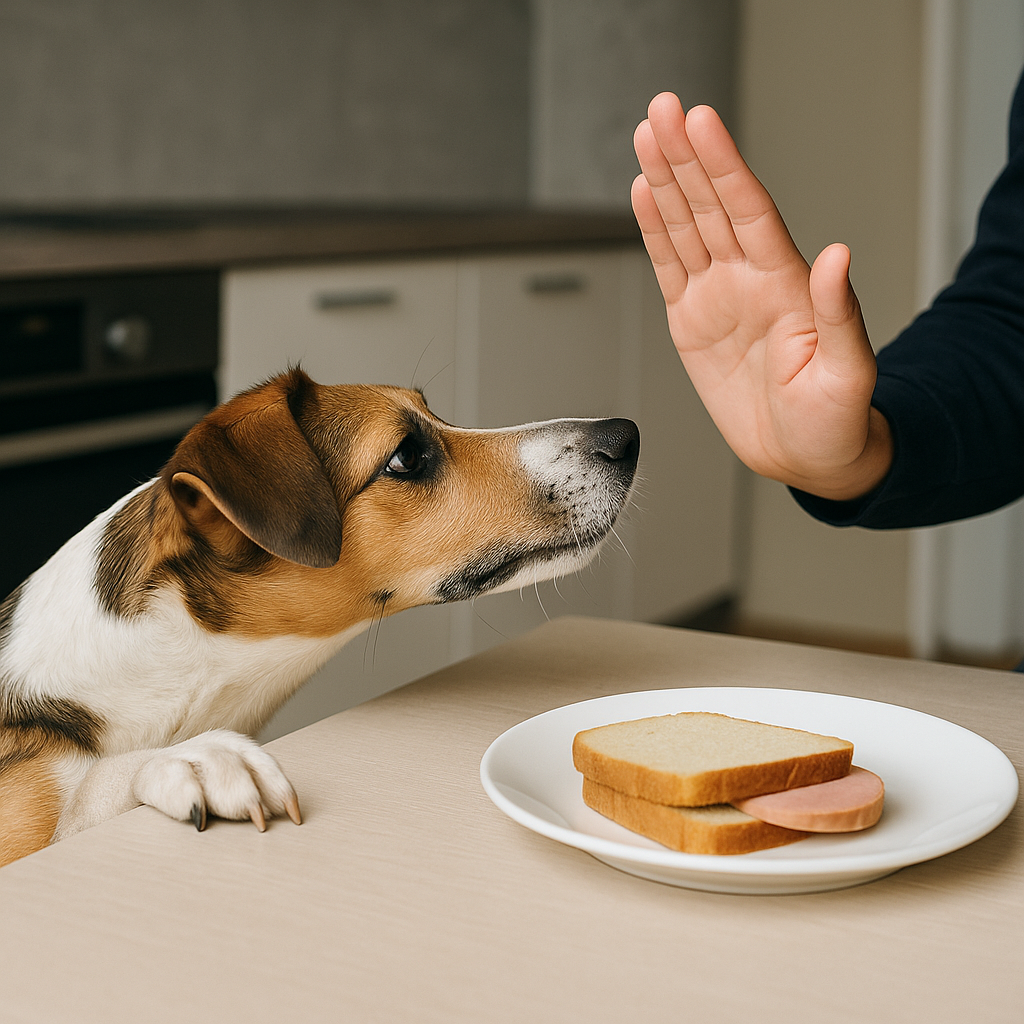 Собаки живут моментом. Ругать за пустую тарелку спустя минуту — ругать за то, что подошёл к вам. Вместо этого — убрать «удачу», научить альтернативе.