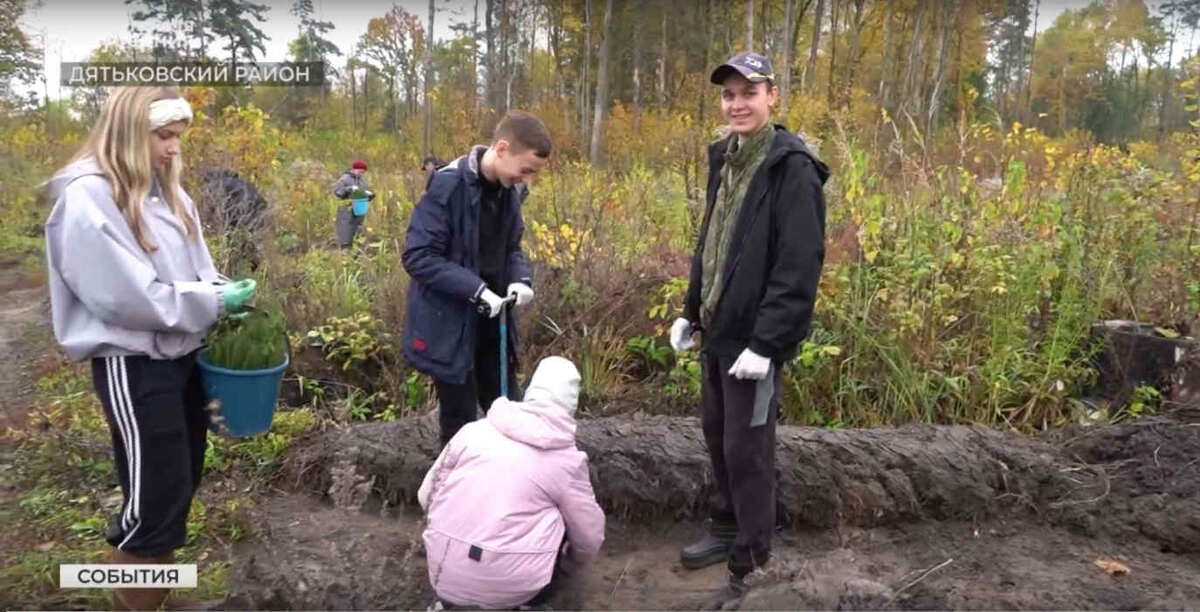 Брянские студенты высадили еловый лес под Дятьково