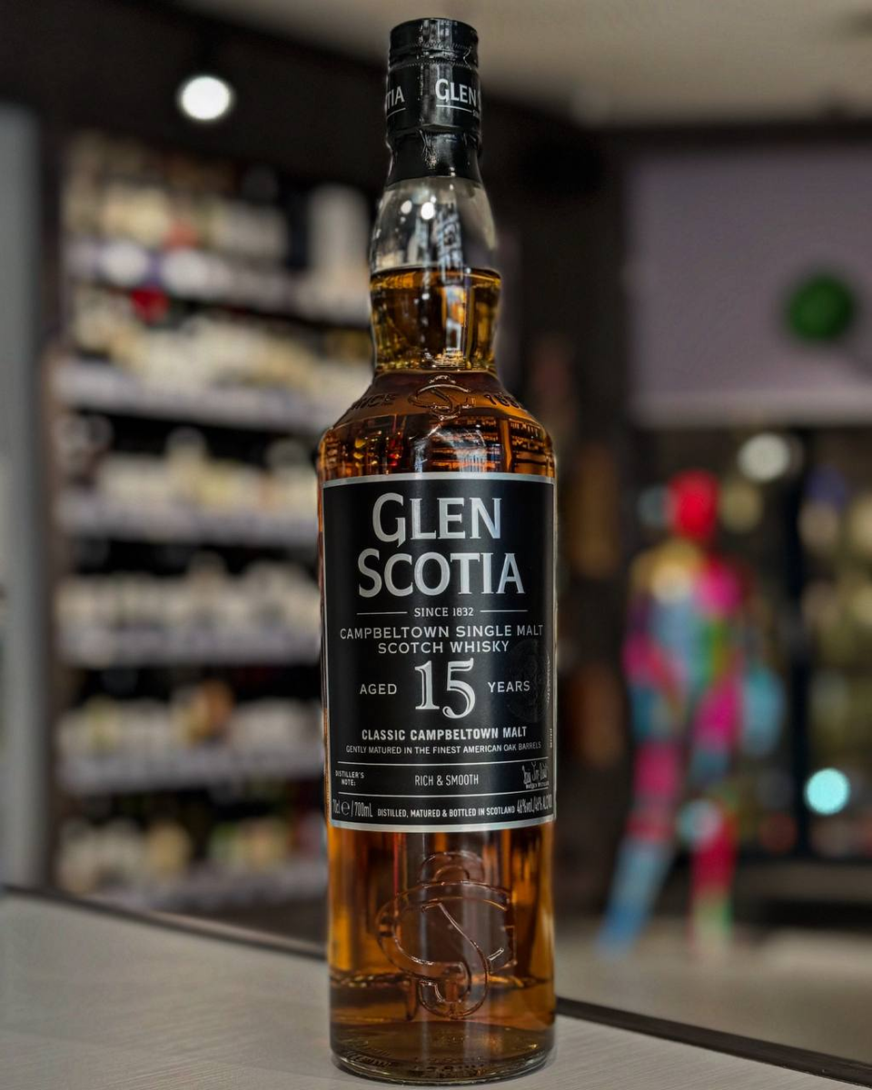 "Glen Scotia" 15 Years Old - односолодовый шотландский виски, выпущенный винокурней в 2015 году в рамках редизайна своего диапазона. Розлив виски производится из специально отобранных бочек, которые обеспечивают истинный характер 15-летнего солодового виски из Кэмпбелтаун. Перед розливом виски выдерживался в лучших американских дубовых бочках.