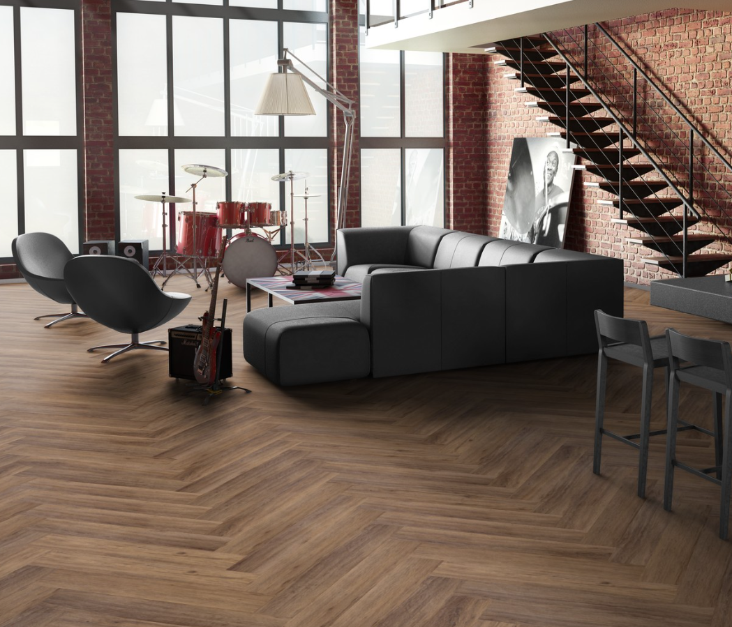 Создайте интерьер своей мечты, выбрав из богатой палитры коллекций. Плитка Tarkett достоверно имитирует текстуру натурального дерева, фактуру камня или дизайнерского керамогранита. И только вы решаете, как ее укладывать. Хоть палубой, хоть елочкой — любой выбранный цвет и формат. В замковых же коллекциях для укладки елочкой необходимо искать специальные коллекции елкой. 2. Бесшовное пространство без порогов