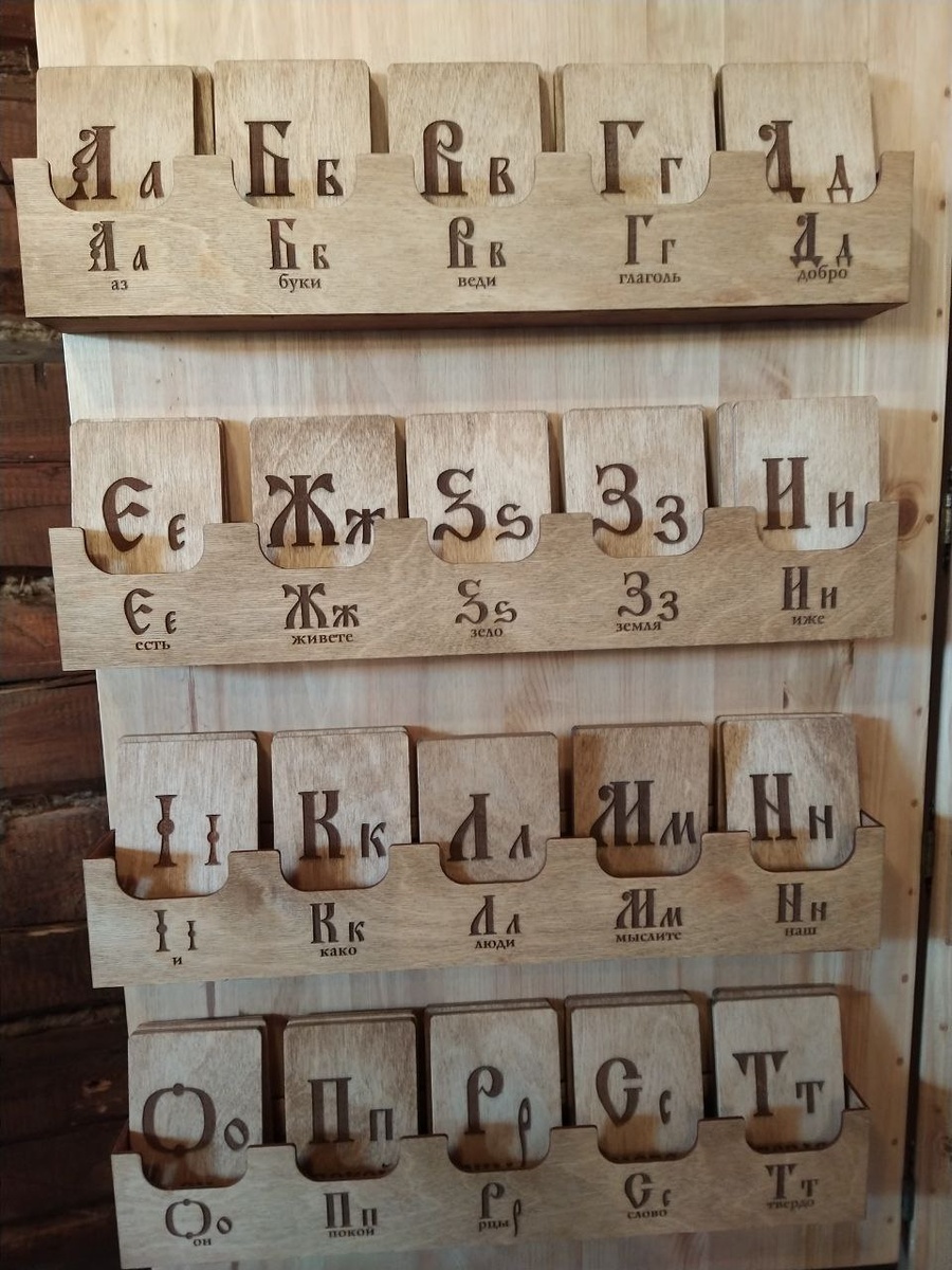 Азбука в сохранившемся здании школы в селе Константиново. Как мы уже писали, в Константинове родился Сергей Есенин и в эту школу он тоже ходил. 😎Один из аттракционов для посетителей — сложить из букв свое имя и посмотреть, какая фраза получится. Попробуете?
