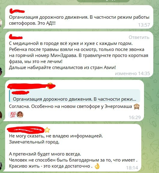 Мы провели на нашем канале онлайн-опрос на тему "Самая большая проблема в нашем городе по вашему мнению..." И вот, что получилось по результатам опроса: 76% считают, что самая большая проблема города Чехова - медицина 70% - ЖКХ 39% - некуда пойти, мало культурных мест, развлечений 29% - считают, что хромает образование 22% - мало рабочих мест 21% - не понравились дороги 15% - неудовлетворены туристической составляющей города 11% - мало кафе и ресторанов ну и 3% - считают, что мало магазинов... Почти никто не ответил, что им наплевать или все устраивает! А что скажете вы?