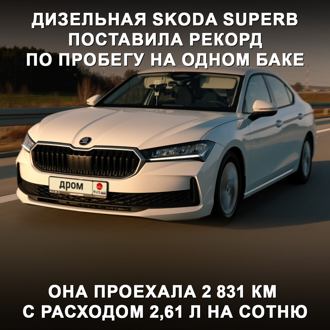 Дизель рано списывать со счетов: Skoda Superb с 2-литровым турбомотором TDI проехала на одном баке 2 831 км.