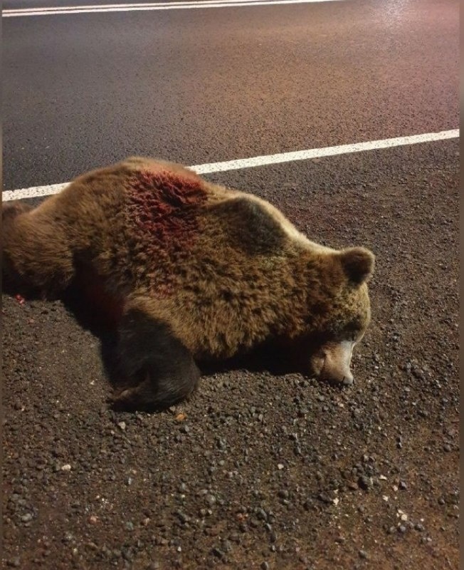 18+ На Мурманском шоссе БМВ сбил насмерть медведя.