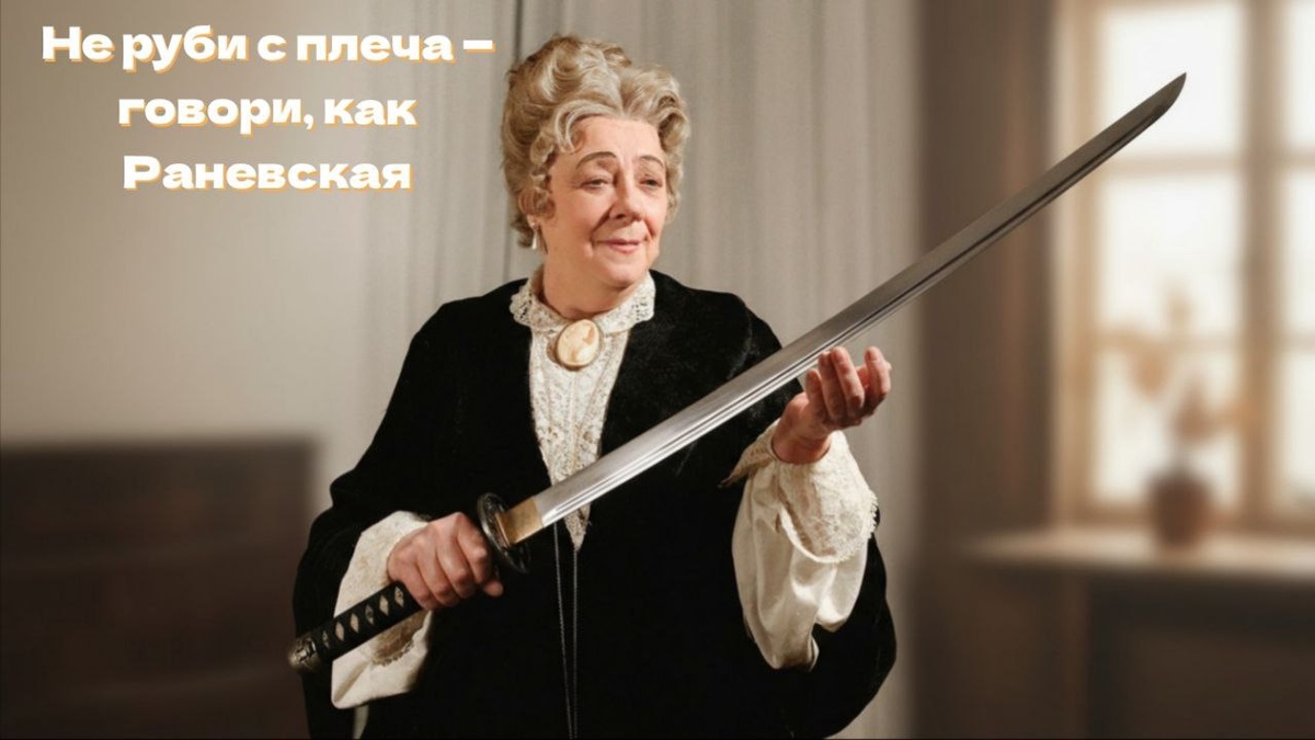 - И, наконец, не путайте иронию с агрессией. Сарказм Раневской был острым, но никогда не злым. Он помогал справляться с болью, а не перекладывать её на других.