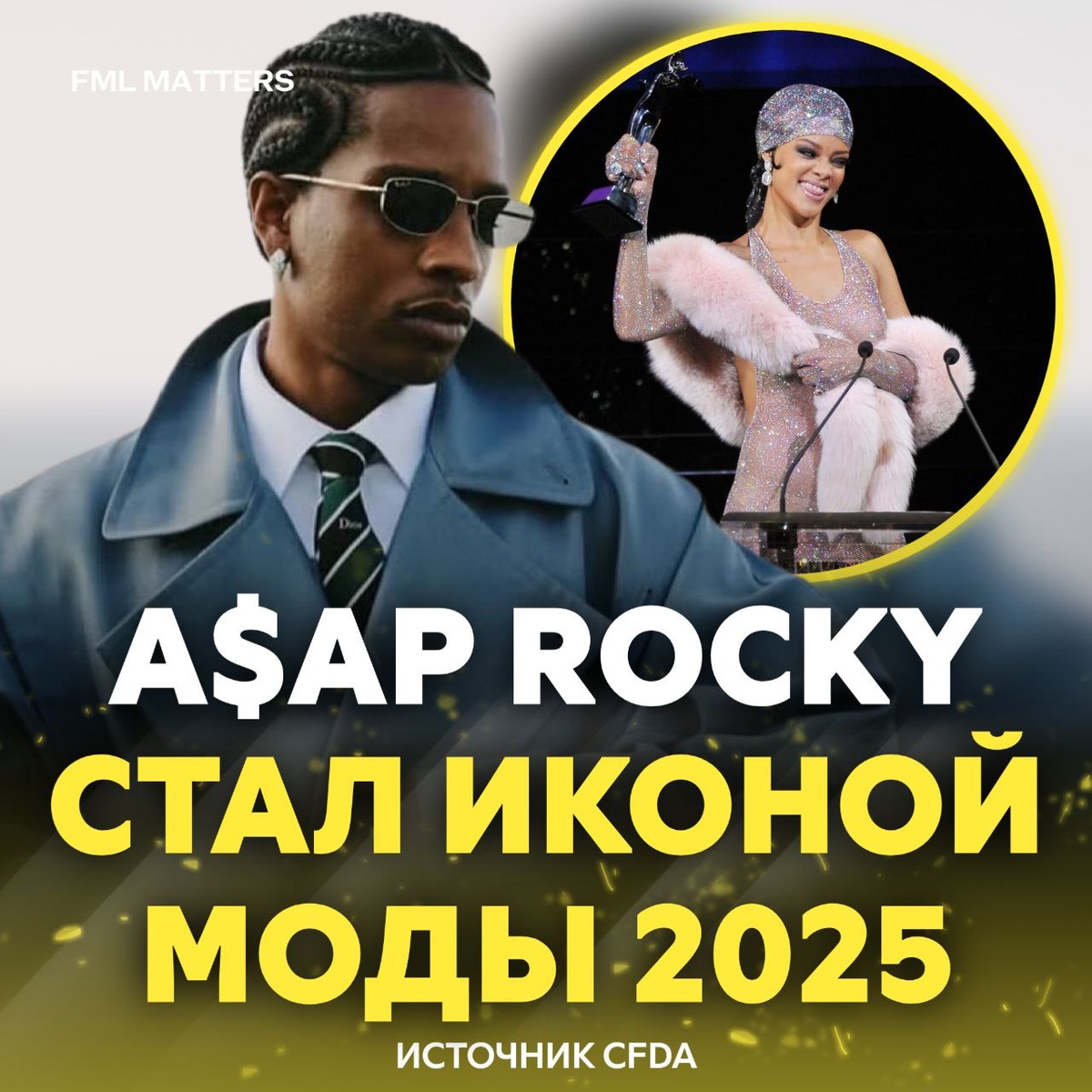 😎 A$AP ROCKY СТАЛ ИКОНОЙ МОДЫ 2025! Раким получил звание "Икона моды 2025" от Совета модных дизайнеров Америки (CFDA). Его отметили за стиль, эксперименты с одеждой и влияние на современную моду. Награду ему вручат 3 ноября в Нью-Йорке. Рианна — получила такую же награду в 2014 году, так что теперь они официально самая стильная пара в индустрии. В комментариях фанаты не оставили это без внимания: «Лучше бы получил награду за лучший альбом, а не за шмотки» Самый стильный? ❤️🔥 / 👎 💀 FML MATTERS