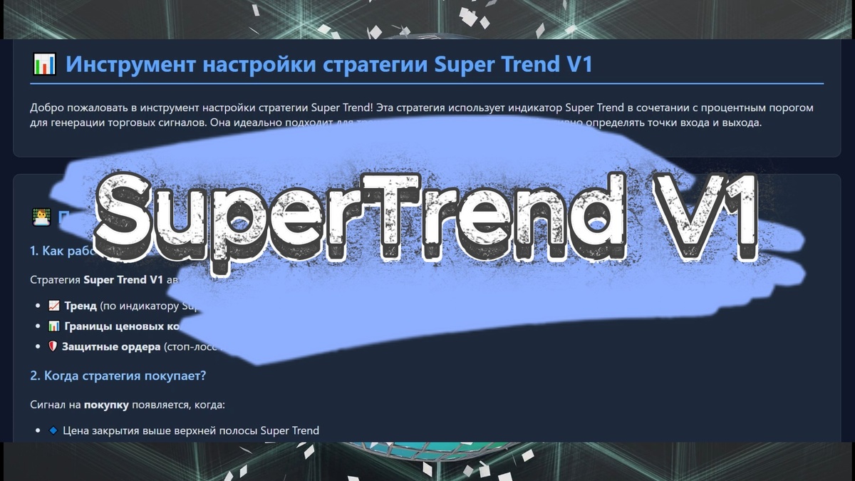 Совет: Сравните результаты SuperTrend V1 с простой стратегией «Купи и держи» (Buy & Hold). Разница в подходах и устойчивости к просадкам может вас приятно удивить.