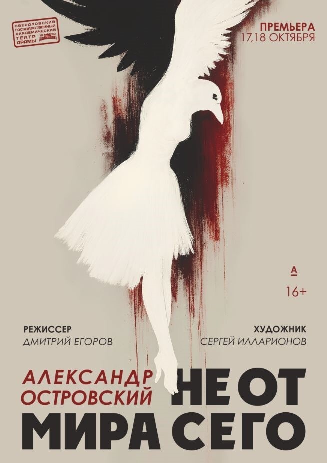 Недавно постелила премьерный спектакль в Свердловском театре драмы «Не от мира сего» по одноименной пьесе А. Н. Островского. Символично, что это была последняя написанная им пьеса, ведь сюжет обращает нас к теме смерти, жертвенности и угасания жизни не в силу возраста, а из-за тех, кто тебя окружает.