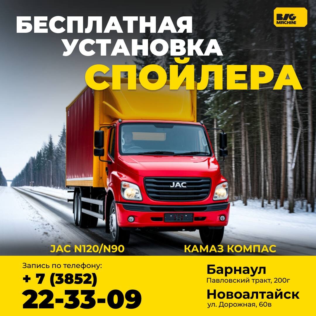 🚛💨 Друзья, внимание! Специальное предложение — бесплатная установка спойлера на грузовик 🔥 Да-да, вы правильно прочитали! Установим бесплатно, и ваш грузовик мгновенно преобразится — и в стиле, и в скорости 😉 Почему стоит поставить спойлер прямо сейчас: ☑️ Аэродинамика на уровне — меньше сопротивления и легкость в управлении. ☑️ Экономия топлива — обтекаемая форма реально снижает расход на больших скоростях. ☑️ Защита кузова — поток воздуха обходит кабину, уменьшая загрязнения и риск повреждений. ☑️ Меньше шума — поездки становятся комфортнее, благодаря снижению звукового давления. Не откладывай обновление на завтра — сделай каждую поездку комфортнее уже сегодня! 📞 Запись на установку: +7 (3852) 22-33-09 Мы находимся по адресам: 🟡 Барнаул, Павловский тракт, 200г 🟡 Новоалтайск, ул. Дорожная, 60в