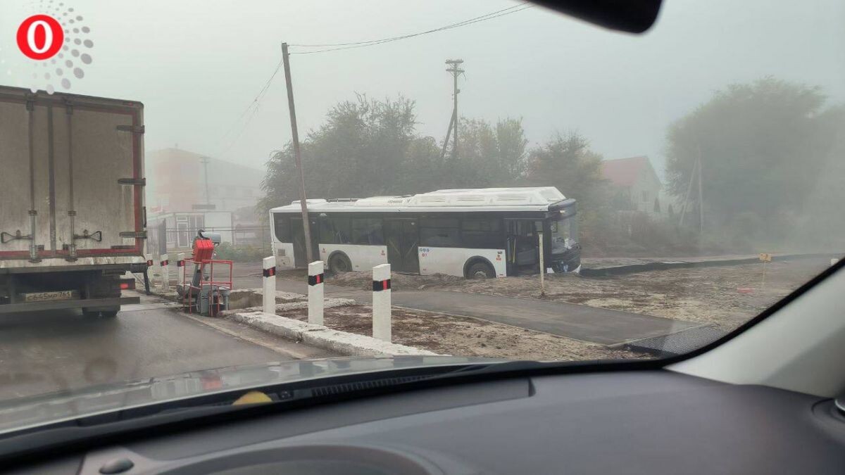 В кювете у железнодорожного переезда в Воронеже запечатлели попавший в ДТП автобус