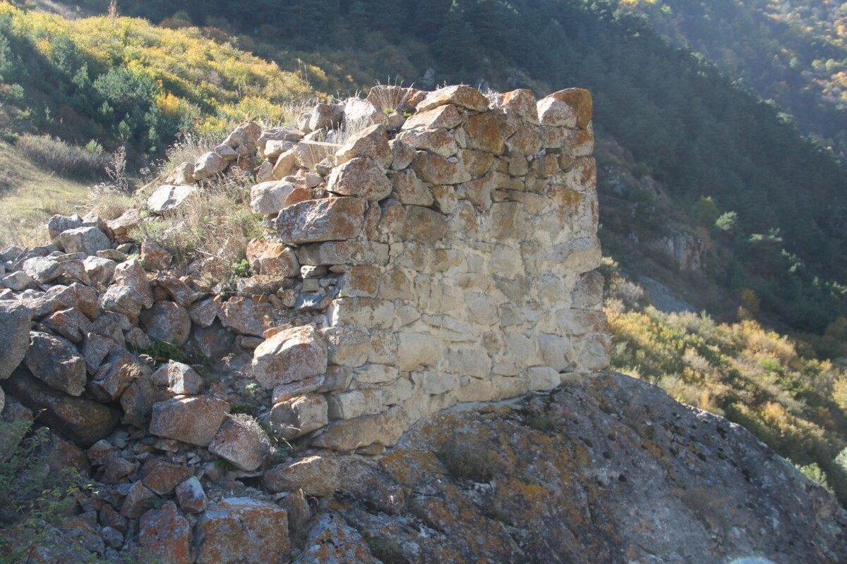 Сторожевая башня Саракаевых в Ахсау Башня расположена в центральной части исторической застройки села, на крутом склоне восточной оконечности каменистого отрога. Эта оборонительная башня с прилегающей усадьбой была построена в конце XVI – начале XVIII века влиятельной местной семьей фамилии Саракаевых (Сарахъатæ). Башня возведена на естественной площадке, образованной соединением верхней части гранитного валуна с крутым склоном отрога. Северо-западная часть конструкции построена на валуне, а юго-восточная — на склоне, где кладка выполняет функцию субструкции. В настоящее время от башни сохранилось только основание. (@Alaniya_nasledie)