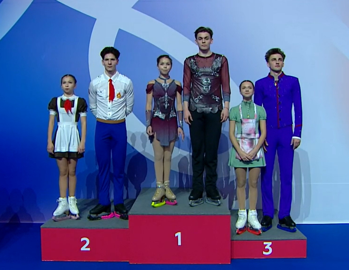Зоя Ковязина – Артемий Мохов. Школа Этери Тутберидзе. Очень круто! 3Ф+2А+2А - неплохо! 3Р - хорошо! Классный подкрут. Классный первый выброс. И только одна ошибка на втором выбросе - касание второй ногой льда. Крутые поддержки. Эстетическое вращение.