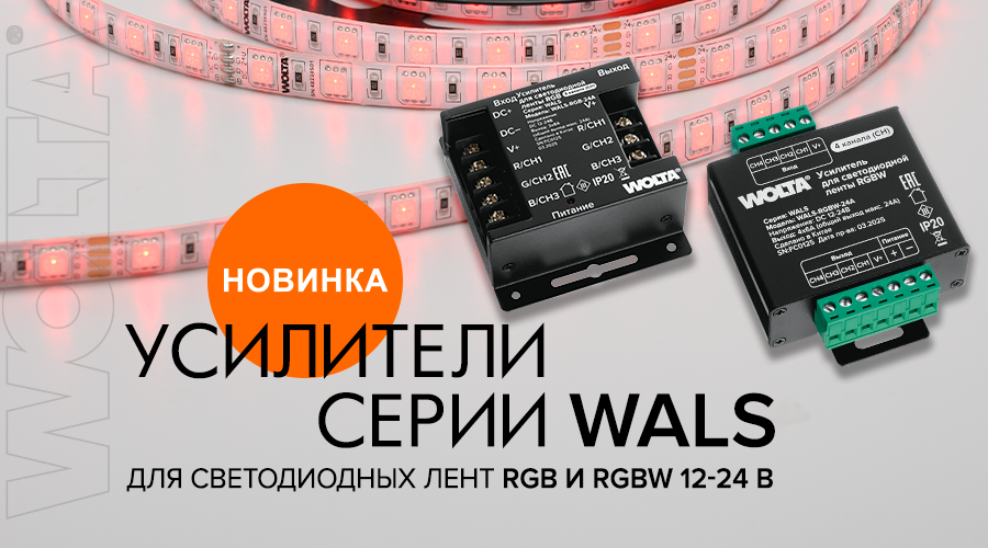 Усилители сигнала для светодиодных лент RGB и RGBW с напряжением 12-24 В DC серии WALS позволяют увеличивать длину светодиодной ленты, сохраняя уровень сигнала от контроллера по всей длине ленты. Применяется в случаях, когда мощности контроллера недостаточно для подключения необходимого количества светодиодных лент. Устройство рассчитано для работы в сети постоянного тока DC.