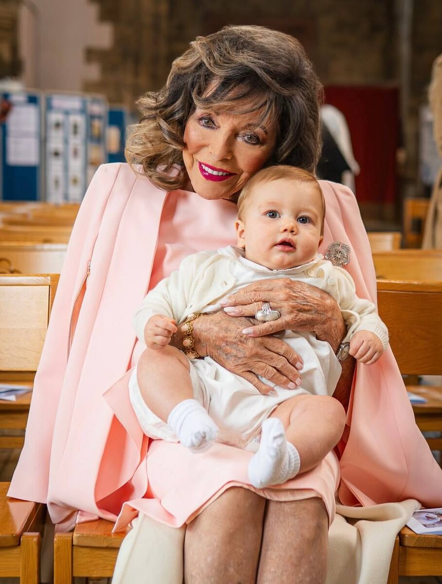 Не побоюсь этого слова «королева» сериала Династия Джоан Коллинз стала крестной матерью в пятнадцатый раз. Крестником британской актрисы стал малыш Феликс Пикок - сын знаменитого диетолога Габриэллы Пикок и ее мужа Дэвида. Украшения на Джоан - прелестны, особенно брошь!