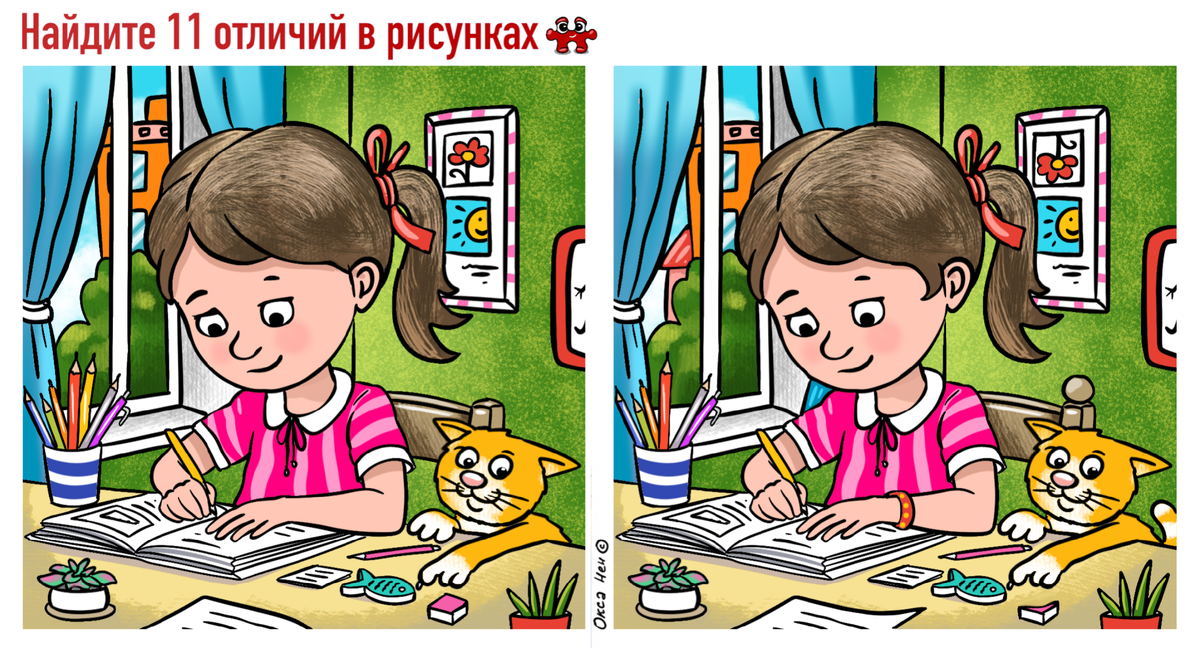 Новая задачка для ума. 11 отличий на позитивных картинках. Тест для хорошего настроения