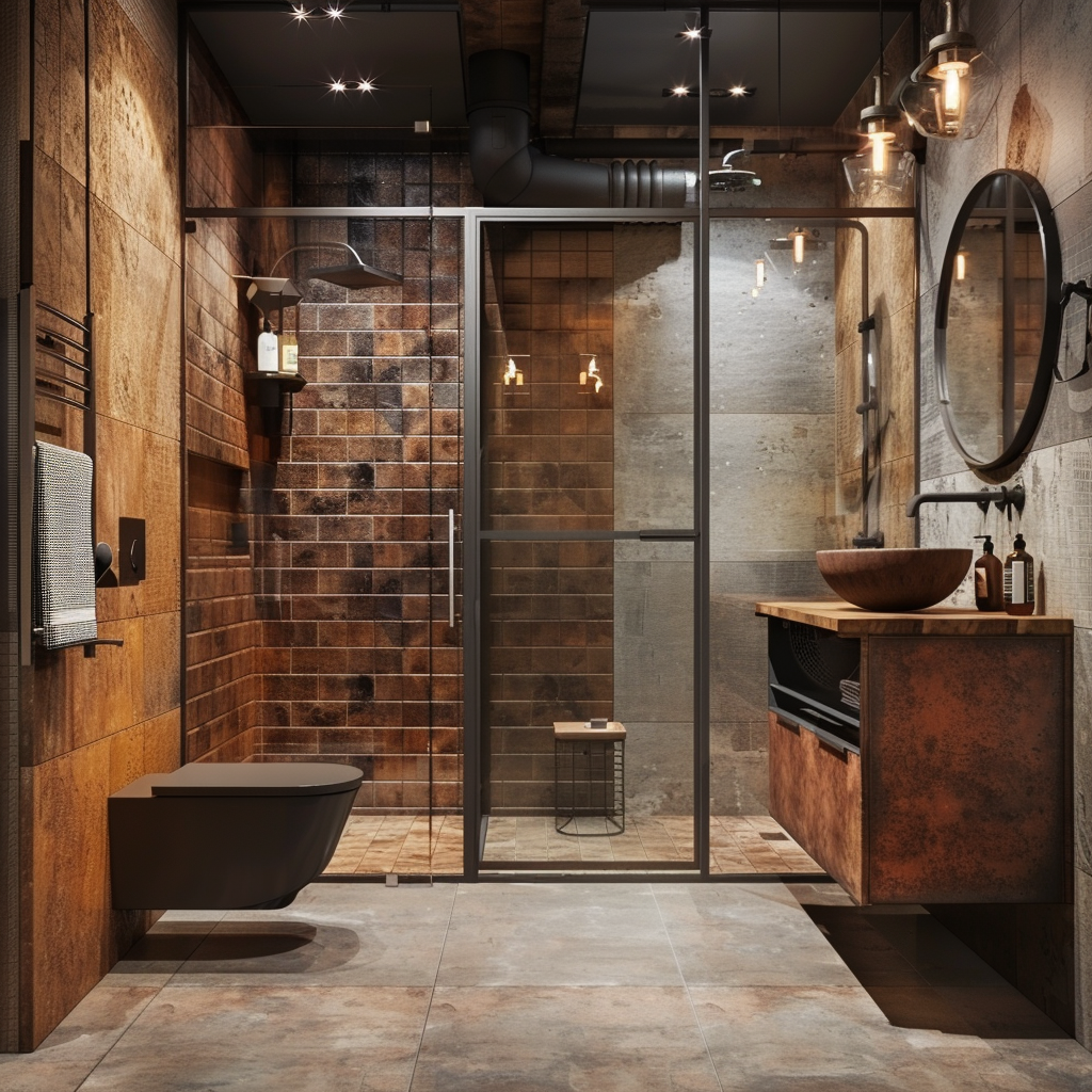 Подбор мебели и аксессуаров для ванной комнаты в стиле лофт также требует особого подхода. Мебель должна быть простой и функциональной, с минимумом декора. В качестве аксессуаров отлично подойдут: