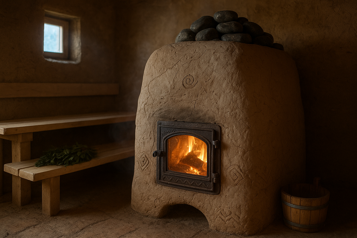 Глина выдерживает сильный жар и отдаёт его мягко, словно материнское тепло. После протопки такая печь долго сохраняет температуру, поддерживая в парной идеальный баланс влажности.