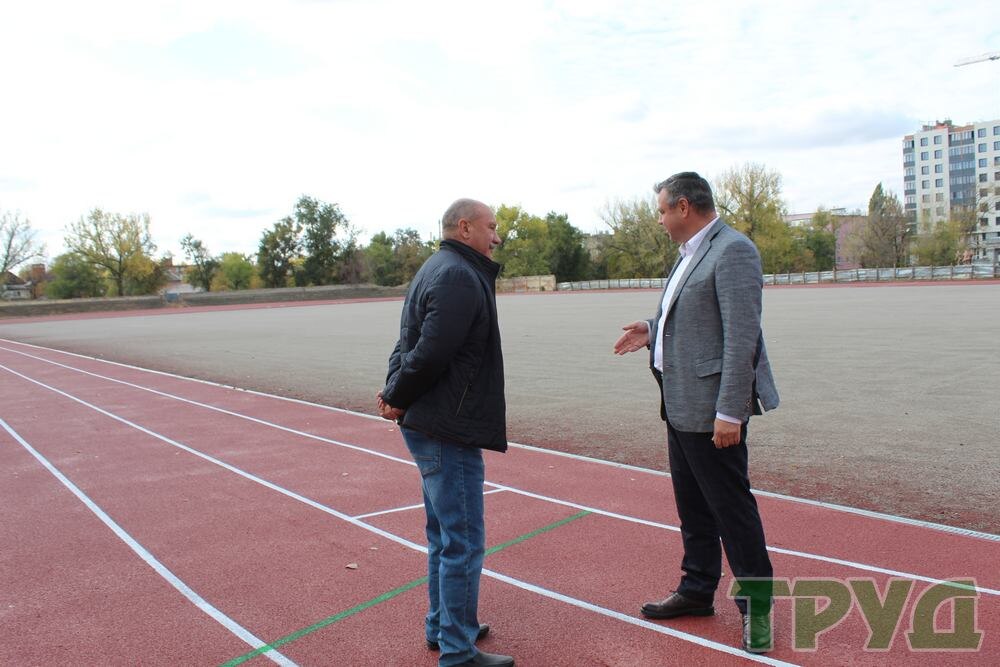 Александр Вячеславович отметил, что даже промежуточный результат восстановления спорткомплекса придает ему современный вид. Помимо уже запланированных работ (покрытие поля, установка осветительных мачт, возведение модульного зала и другое) глава города поручил подготовить справку о том, какое ограждение и по какой стоимости можно установить по периметру всего спорткомплекса.