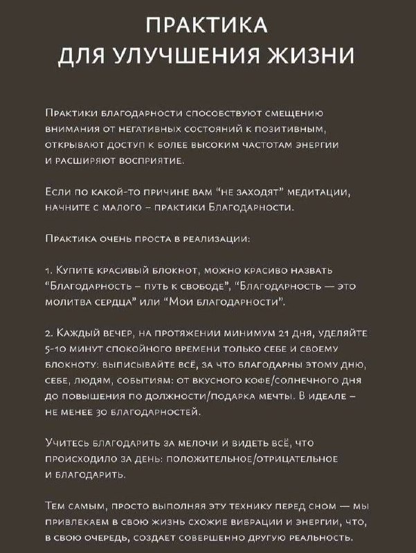 Дорогие друзья, многим, почти всем, рекомендую эту практику, кто еще не делает/не делал - начните, посвятите 2️⃣1️⃣ день себе