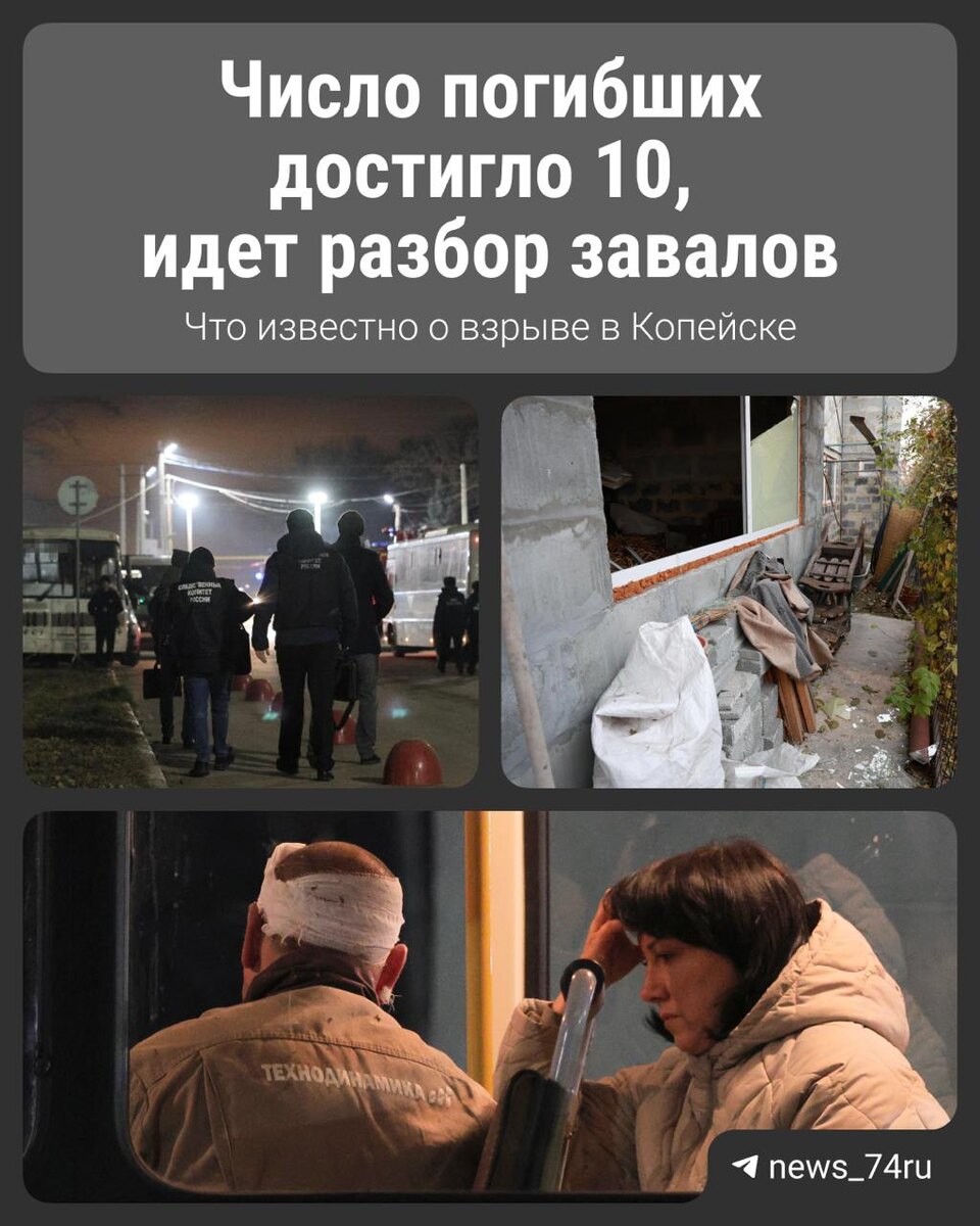 ⏺ Число погибших выросло до 10 человек, сообщил губернатор Алексей Текслер. По данным ТАСС, 18 человек получили травмы.