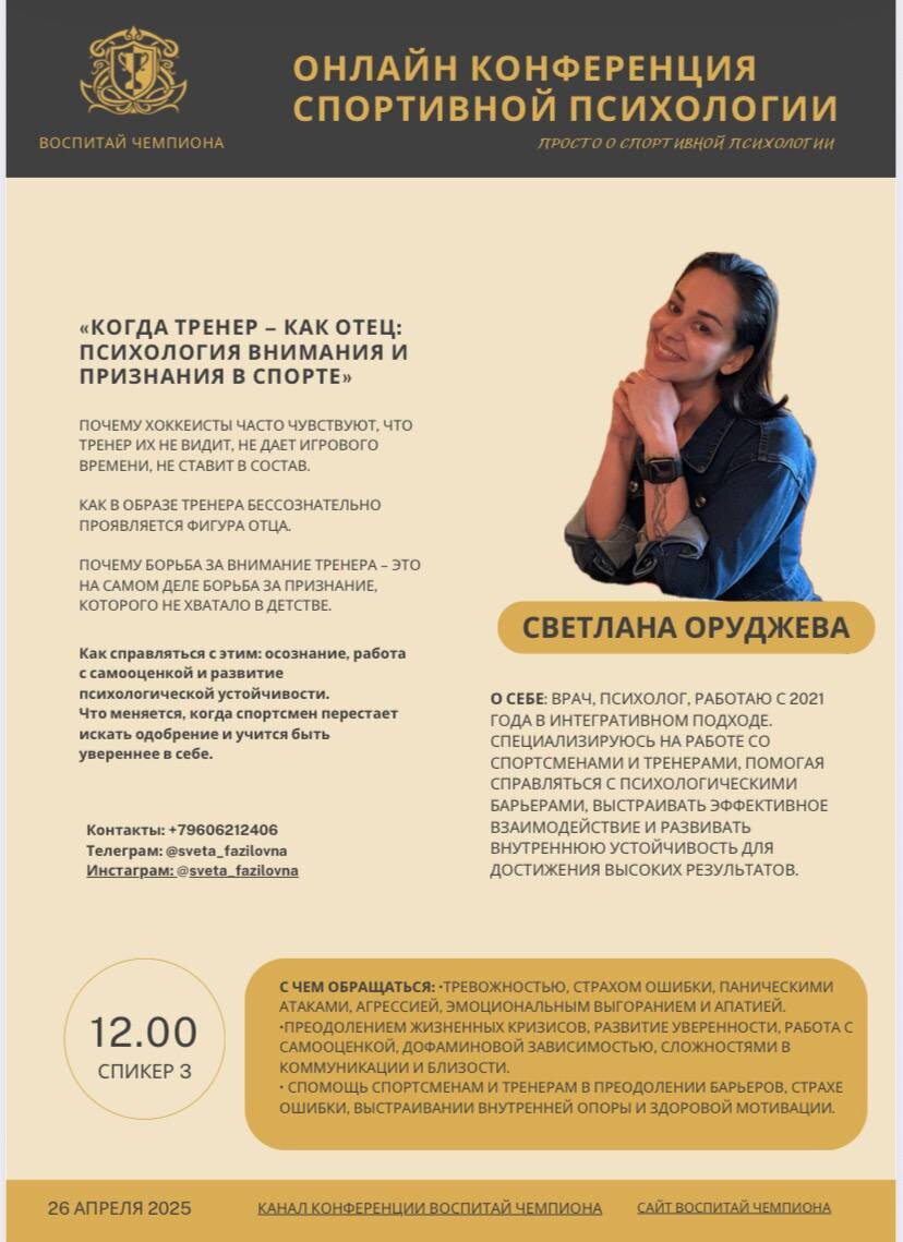 Друзья, помните весной на конференции Воспитай Чемпиона Светлана Оруджева рассказывала об отношениях с тренером? Сейчас у нее запускается интересный курс в легком формате. Со Светой часто работают мои спортсмены, когда спортивной психологии становится недостаточно. О ее курсе подробнее ниже