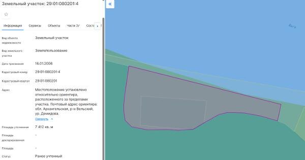 Название: Земельный участок с кадастровым номером 29:01:080201:4, площадью 7412 кв.м., вид разрешенного использования: для