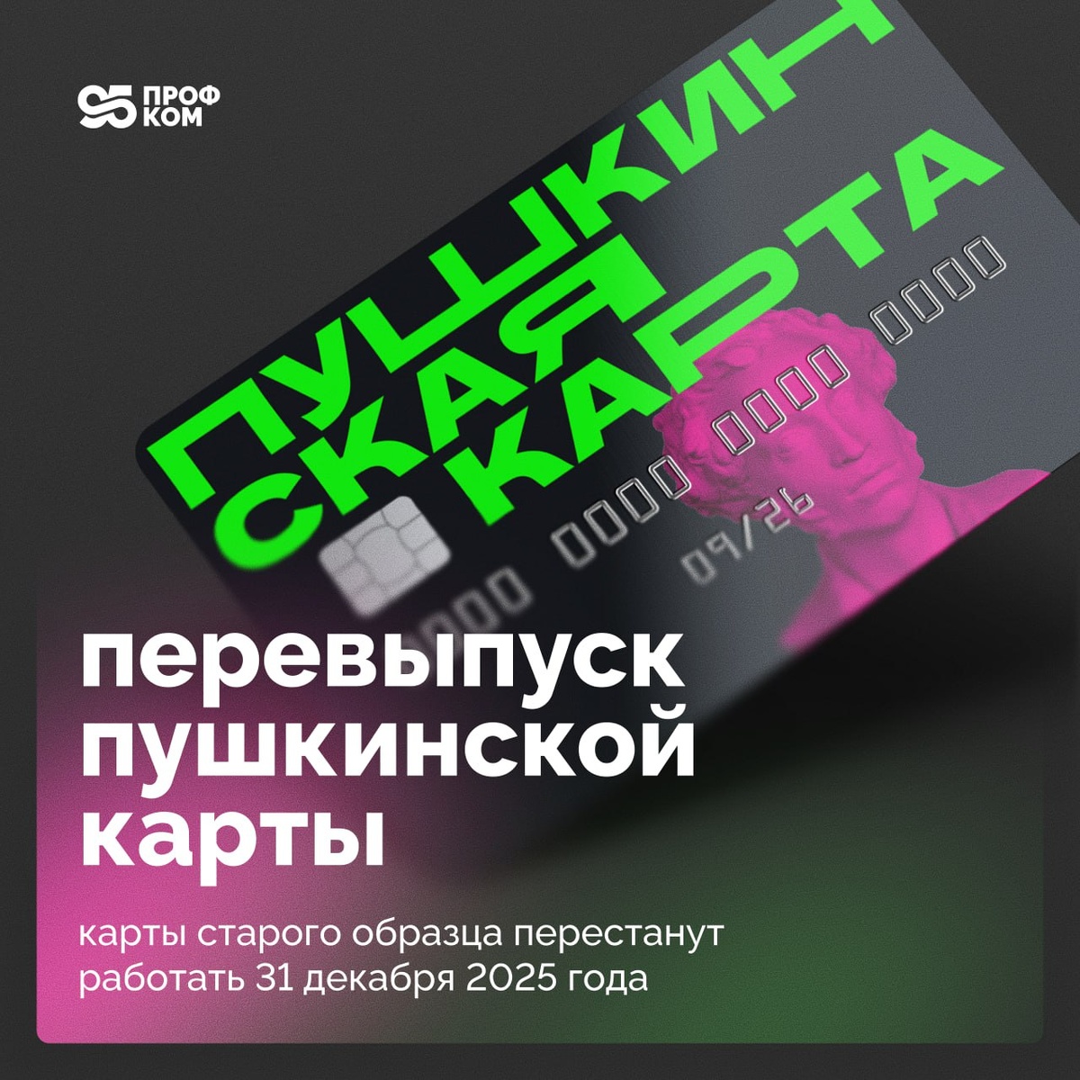 🎭 Пора перевыпустить Пушкинскую карту С 1 января 2026 года у программы появится новый оператор — банк ВТБ. Это значит, что карты старого образца от Почта Банка перестанут работать. Чтобы не остаться без театров, музеев и концертов — просто перевыпустите карту заранее. Сделать это можно уже сейчас: — на сайте «Госуслуги Культура» — в мобильном приложении — или лично в офисах ВТБ и Почта Банка Карты Почта Банка работают до 20:00 31 декабря 2025 года, а уже через сутки, с 20:00 1 января 2026 года, активируются новые карты. Не теряйте время! Пусть Новый год начнётся с билета в театр с новой Пушкинской картой 😉 Источник: Голос ИРНИТУ