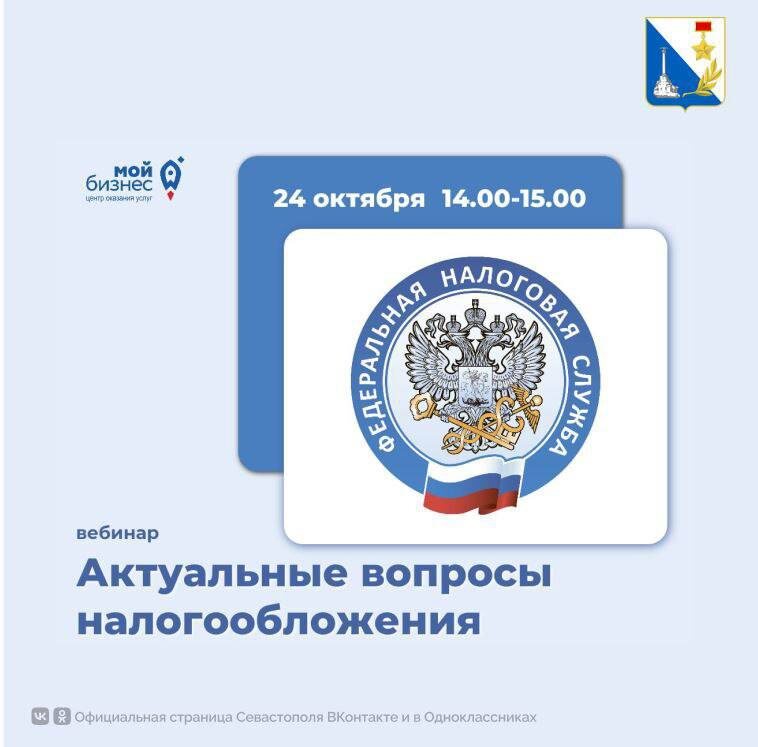 Консультируем предпринимателей УФНС России по Севастополю проведет вебинар по актуальным вопросам налогообложения 24 октября с 14:00 до 15:00. 🍂Спикеры расскажут о порядке исчисления и уплаты имущественных налогов для физлиц в текущем году, а также о новых правилах взыскания налоговой задолженности, которые вступают в силу с 1 ноября. Мероприятие пройдет в онлайн-формате, для участия требуется регистрация по ссылке. Это часть нацпроекта «Эффективная и конкурентная экономика». Подписывайтесь на наш канал в МАХ
