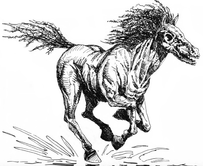 Но в день свадьбы, как раз когда невеста выходила из церкви, её схватил огромный чёрный конь и унёс по направлению к воде.