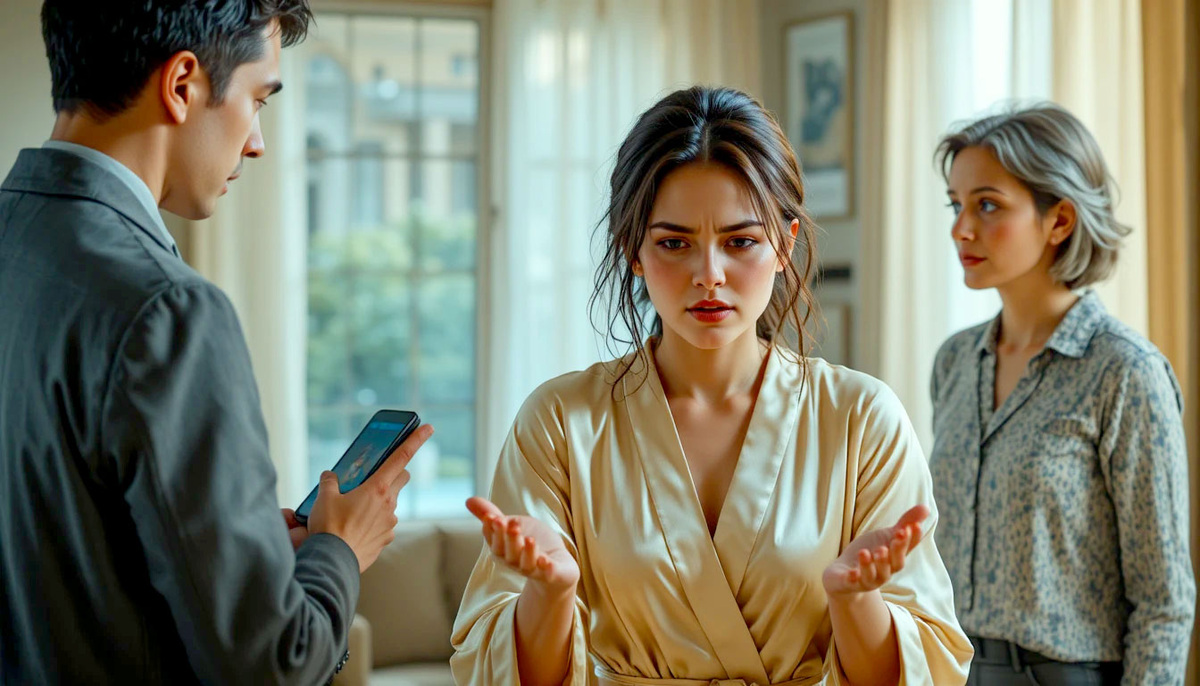 Алина открыла дверь в шёлковом халате, с безупречным макияжем, явно не ожидая нас обоих.