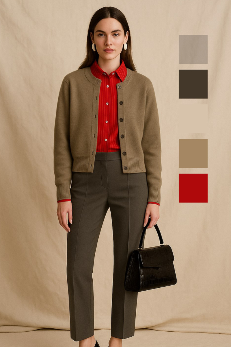 С какими цветами сочетаются тёплые оттенки? Тёплыми считаются оттенки, такие как оранжевый, жёлтый, красный, коралловый, золотистый и персиковый. Палитра многообразна и не ограничивается перечисленными, однако есть цвета с которыми сочетание будет наиболее удачным. ☑️ Тёплые + нейтральные оттенки (бежевый, коричневый): тёплые тона создают гармоничное сочетание с нейтральными оттенками, придавая образу мягкость. ☑️ С другими тёплыми цветами: сочетание тёплых оттенков друг с другом может создать яркий и насыщенный образ. Например, разные оттенки красного и оранжевого. ☑️ С природными тонами (зелёный, терракотовый, охра): тёплые оттенки хорошо сочетаются с природными цветами, создавая естественные и гармоничные образы. ☑️ С металлическими оттенками (золото, медь, бронза): тёплые цвета прекрасно дополняются металлическими оттенками, что придаёт образу элегантность и изысканность. Не стоит забывать, что в подборе стиля важны и другие моменты, например какой у вас цветотип внешности.